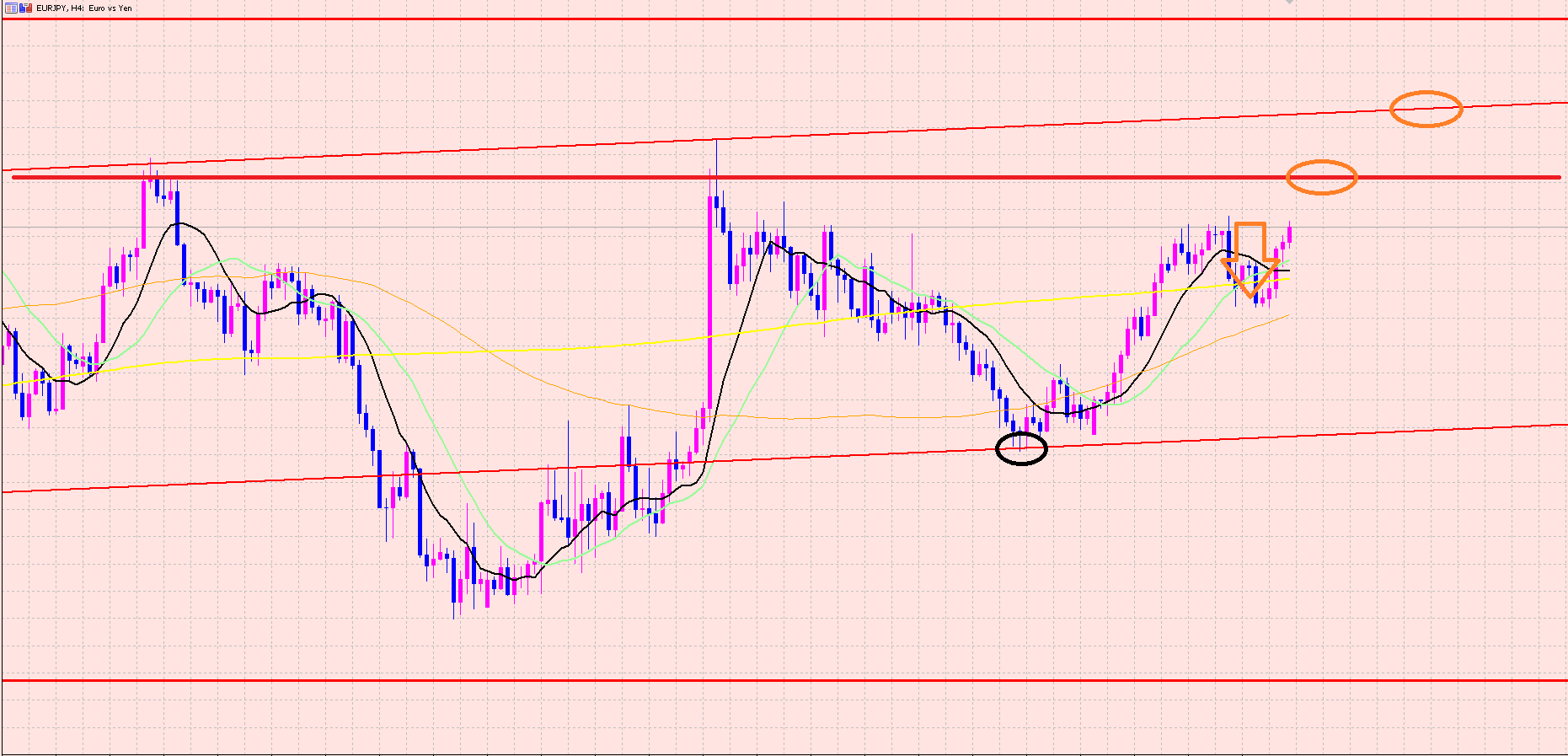 ユーロ円の4Hサイクルは黒〇からスタートしているので今は41本目ですよぉ(^^♪