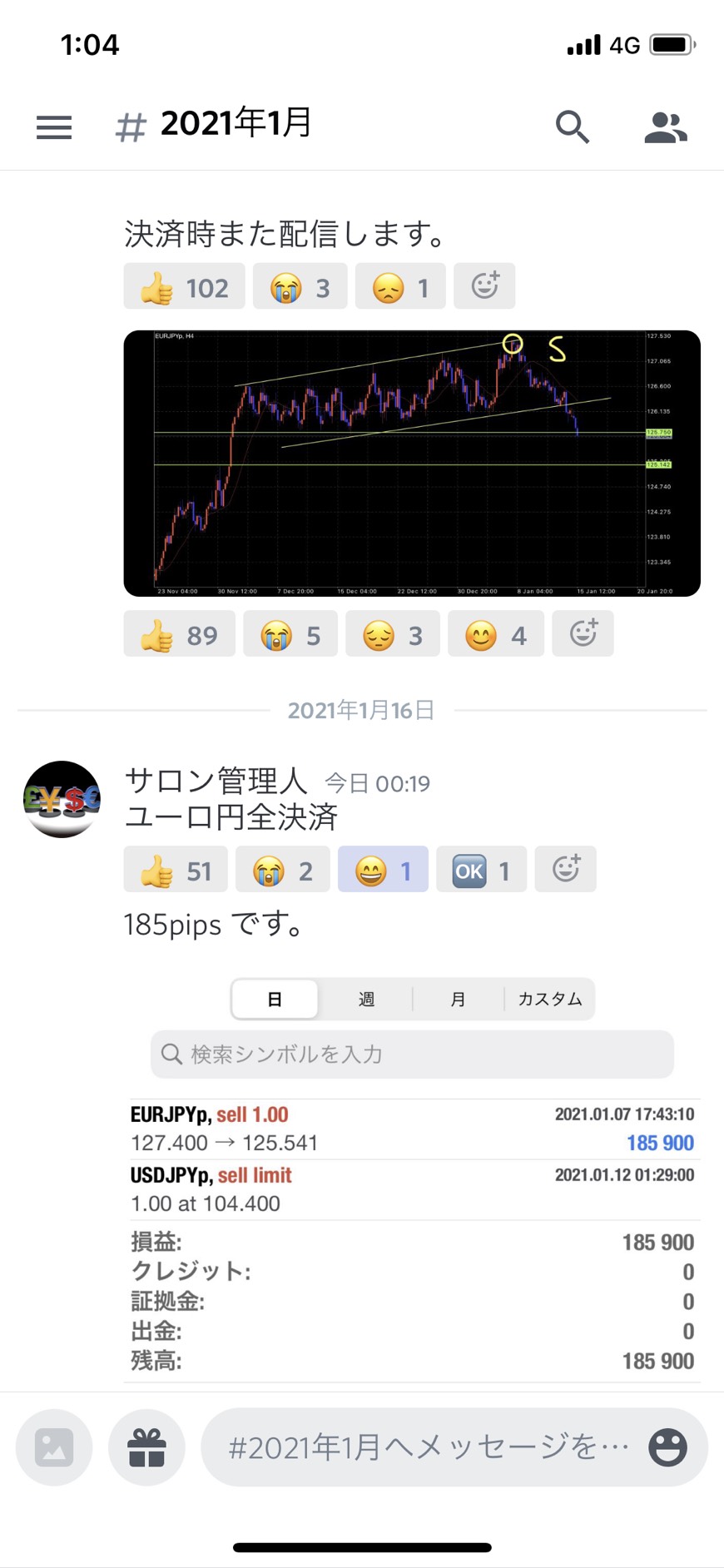 先週の金曜日はサロンでのリアルタイムトレード配信でも+185pipsで+18万円でした👍