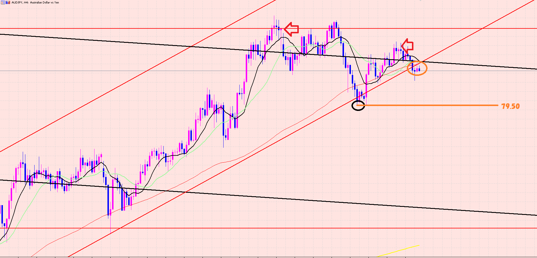 下値はオレンジのラインの79.50割れを狙います(*^_^*)