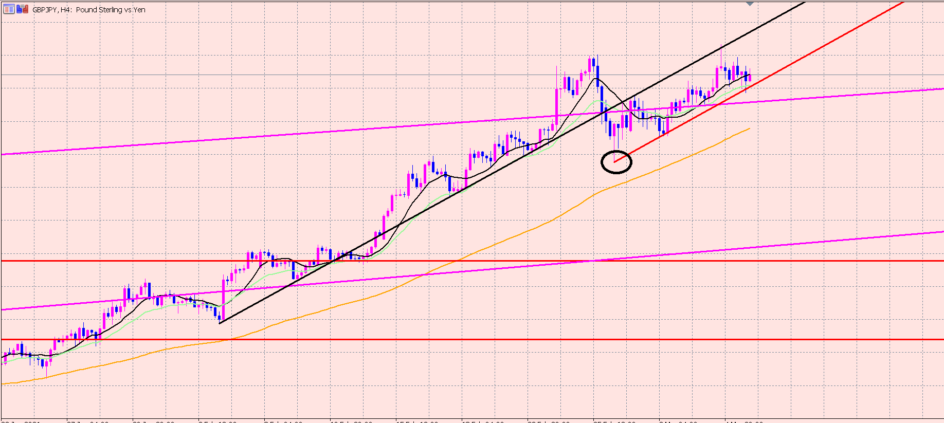 ポンド円の4Hサイクルは黒〇からスタートしているので今は34本目ですよぉ(^^♪