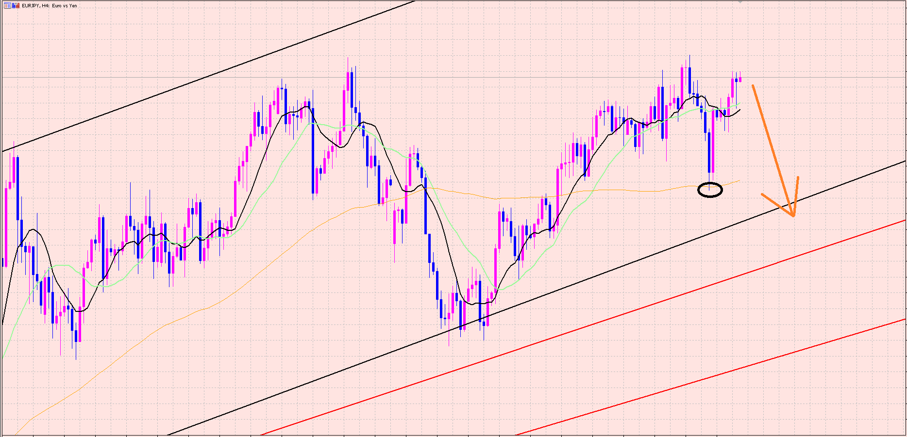 ユーロ円の4Hサイクルは黒〇からスタートしているので今は9本目ですよぉ(^^♪