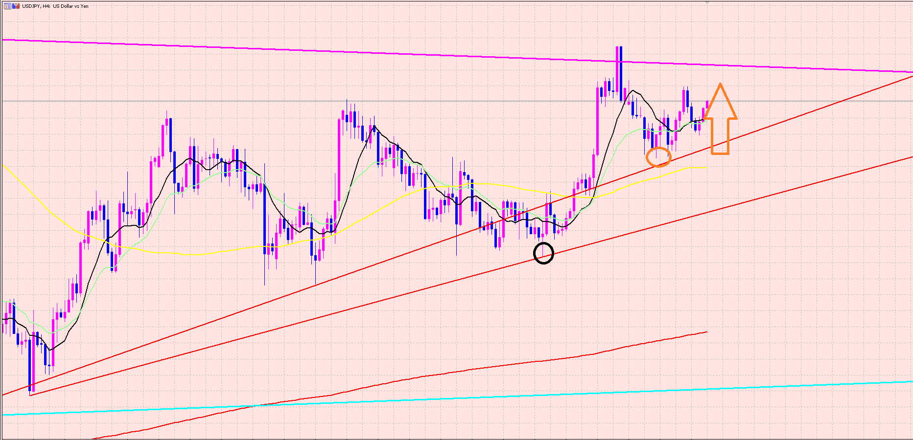 ドル円の4Hサイクルは黒○からスタートしているので今は43本目ですよぉ(^^♪