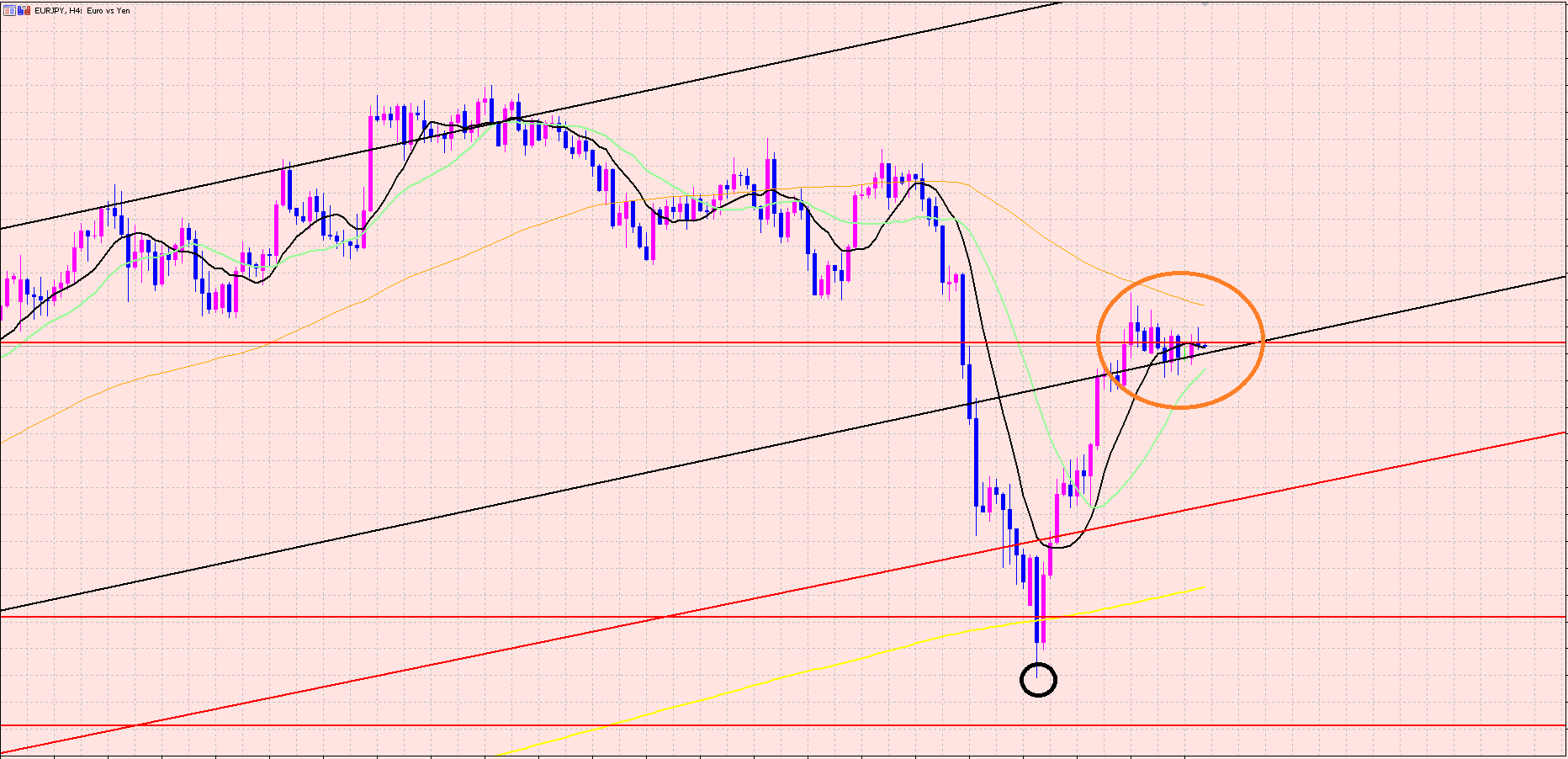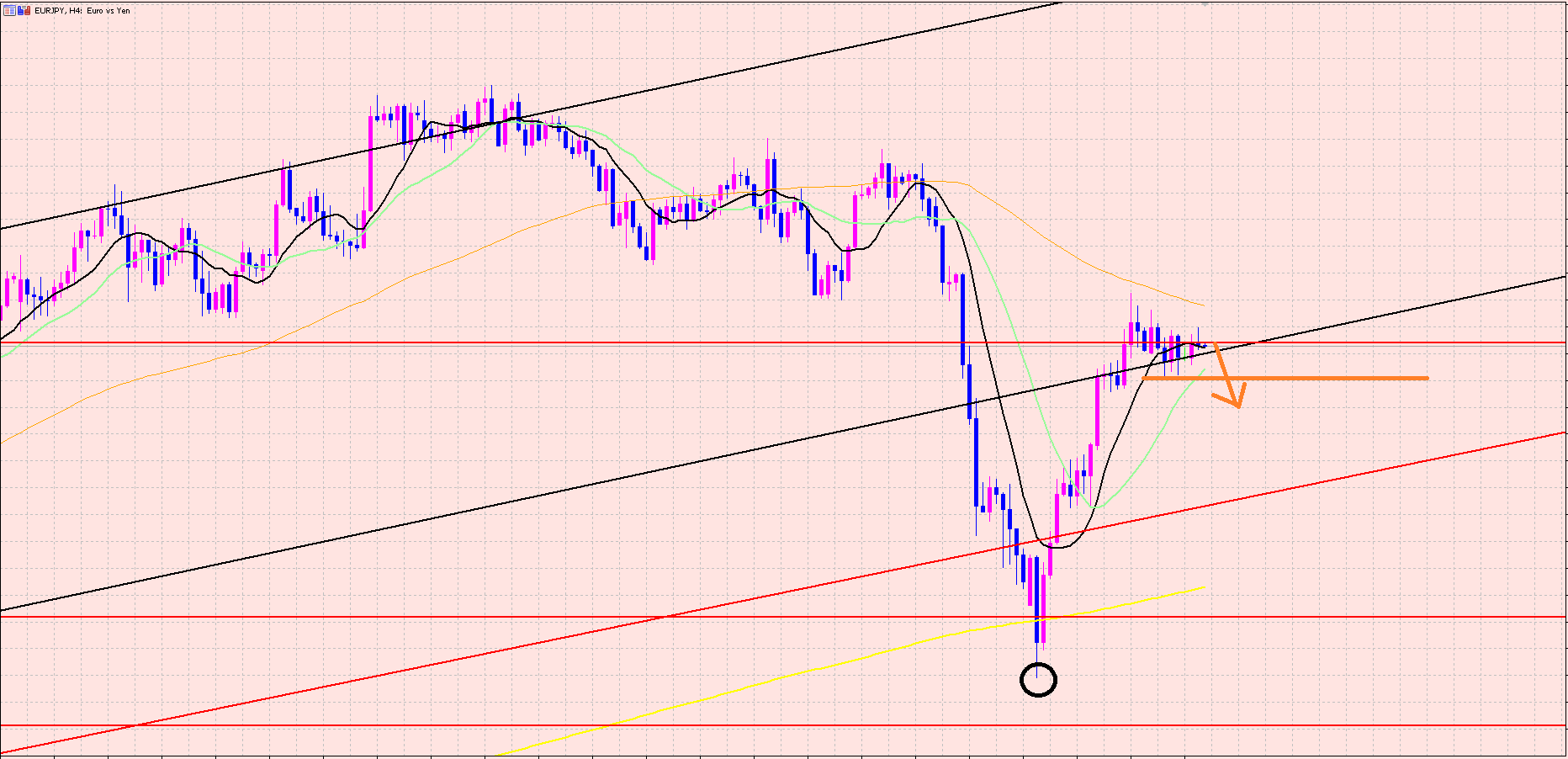 ユーロ円の4Hサイクルは黒○からスタートしているので今は26本目ですよぉ(^^♪
