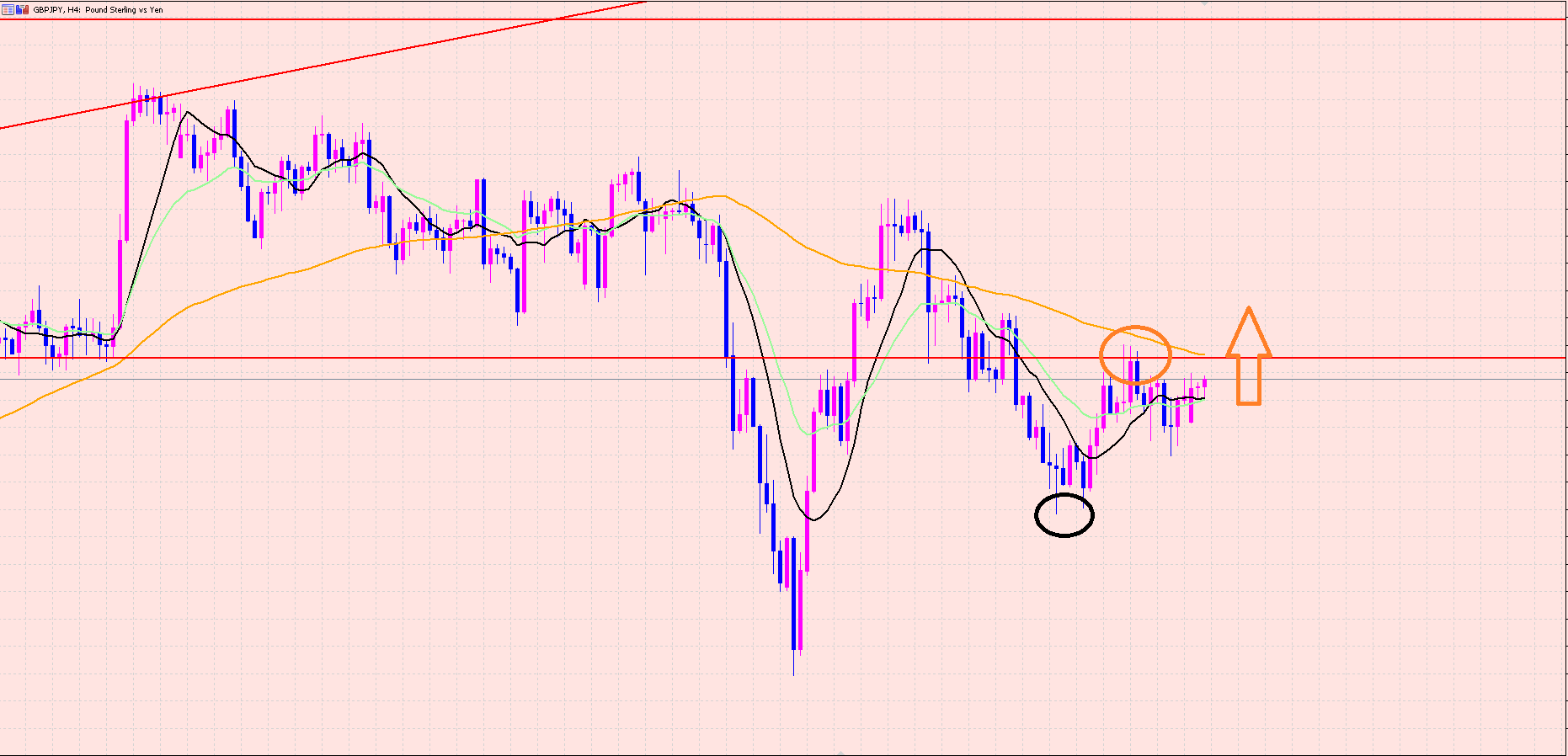 ポンド円の4Hサイクルは黒○からスタートしているので今は62本目ですよぉ(^^♪