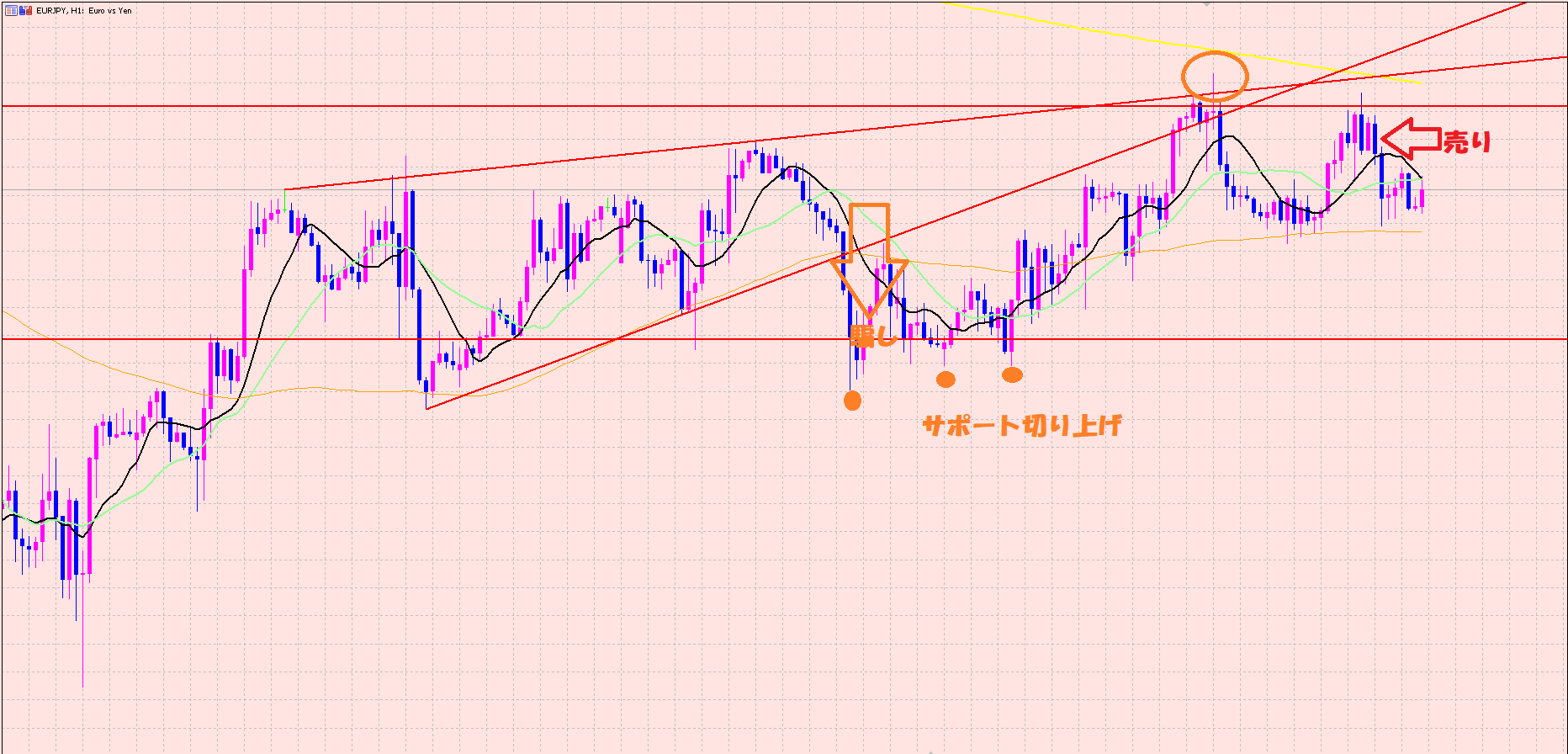 前回注目していた短期の1H足のポイントは、騙しの下落でした(T_T)