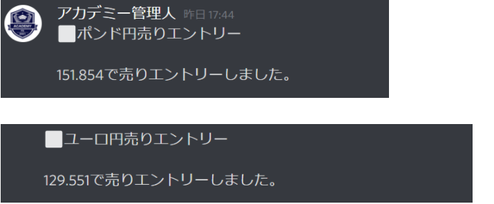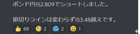 売りエントリー配信で330pipsは利益確定しました♡