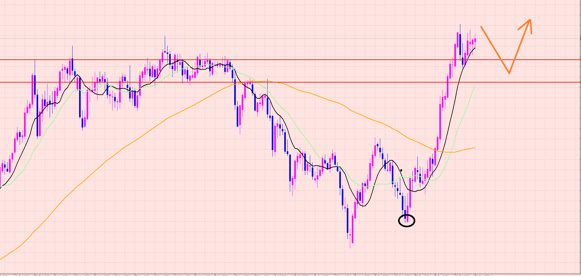 1H足から下落が確認できれば、メジャーサイクルボトムをつける下落になるので、買いエントリーを狙います♡