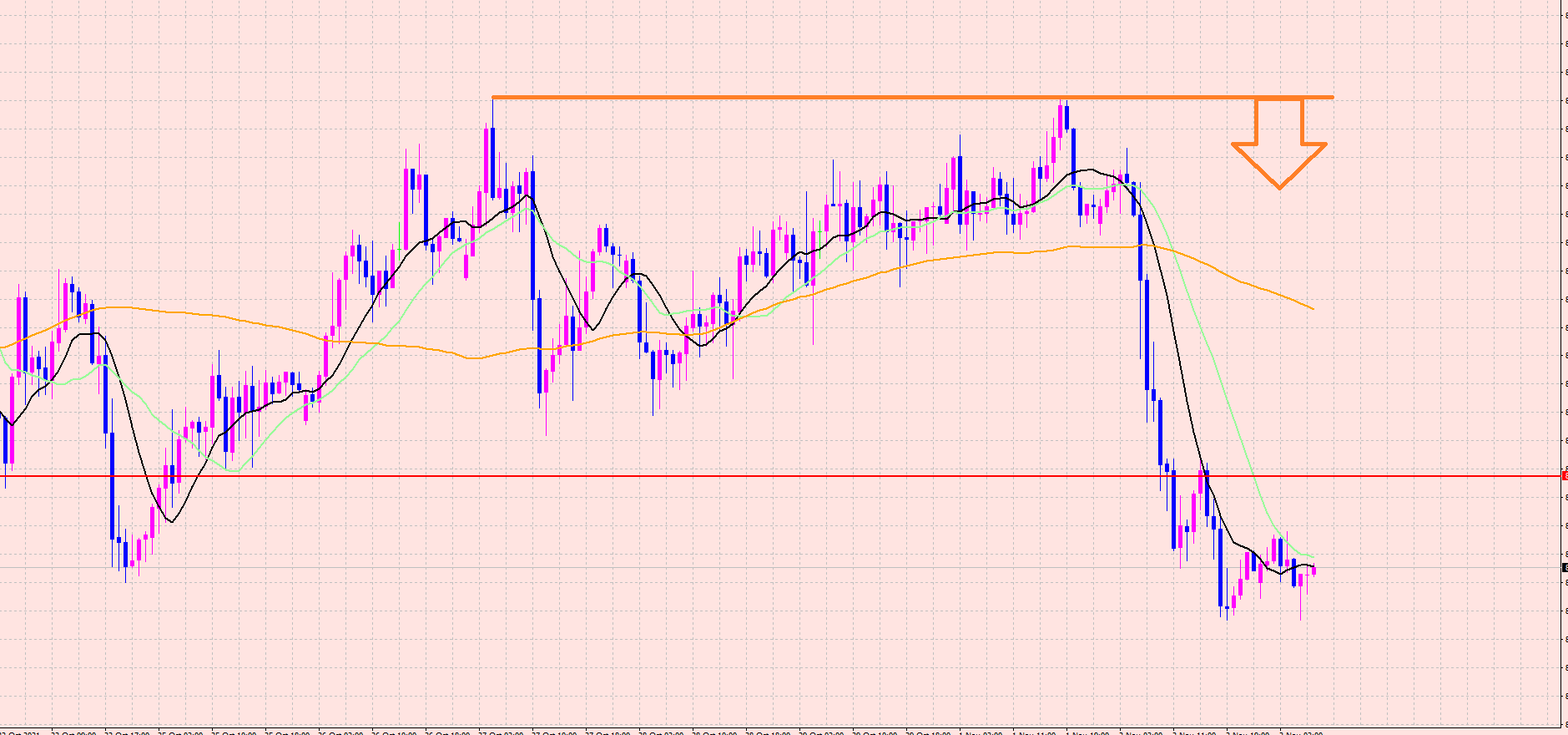 短期チャートも注目していたのですが、直近高値を超えなかったので下落しましたね\(^o^)/