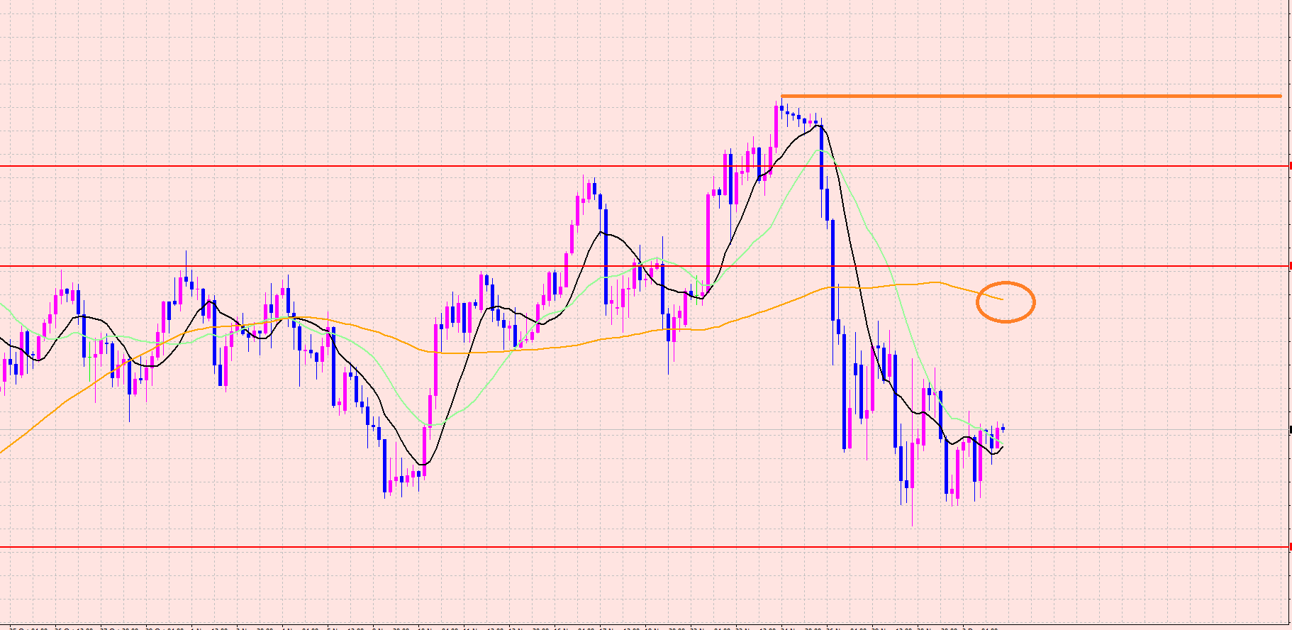 ダウントレンド転換ならオレンジの高値は超えないので、