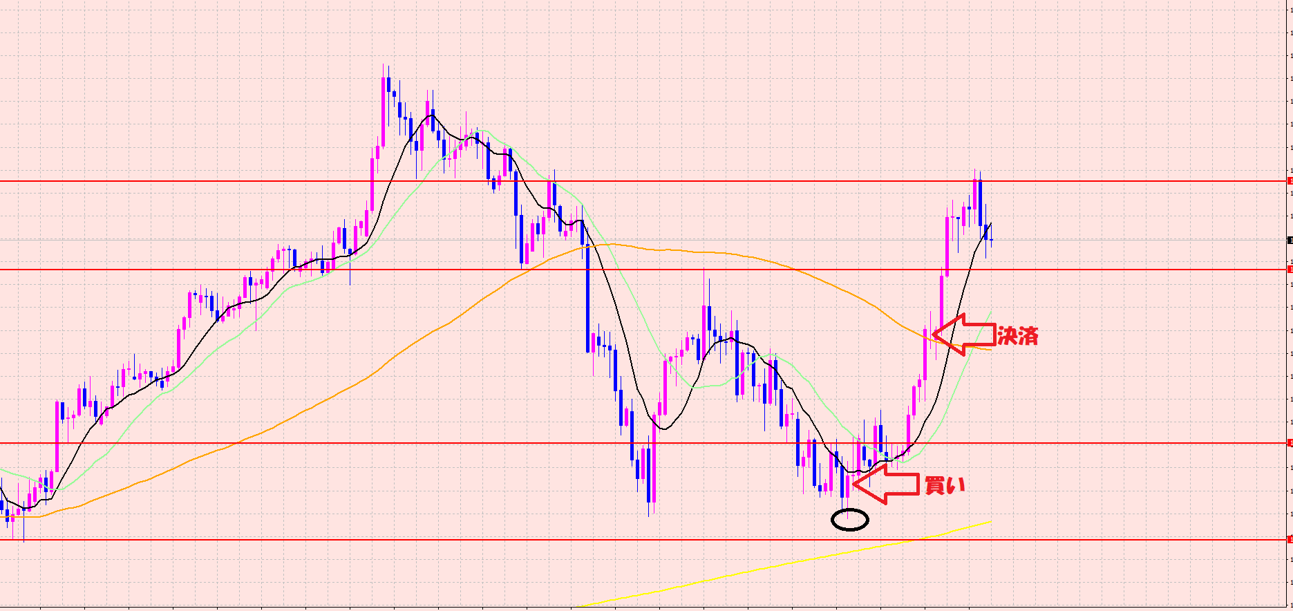 ↑が買いエントリーのトレード結果です。