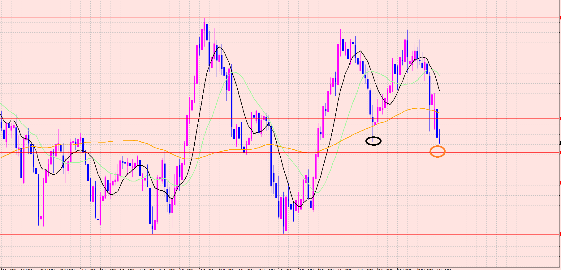 下値のラインまで下落していく可能性は高いです。