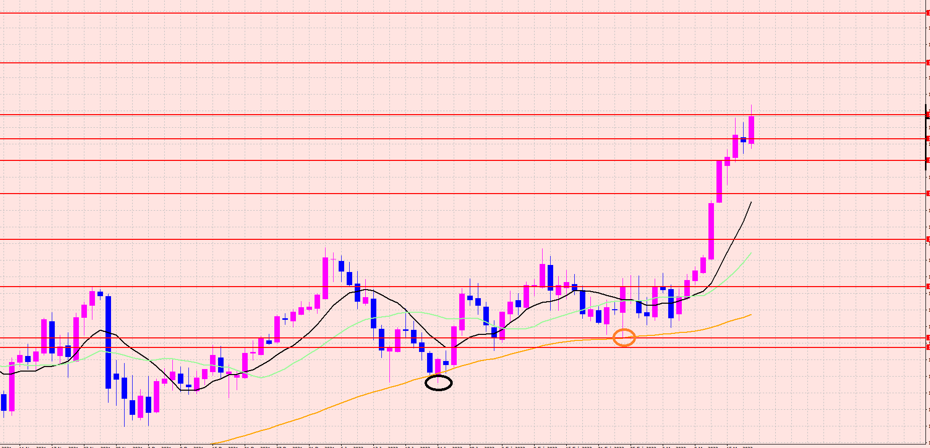 日足のメジャーサイクルは黒〇オレンジの〇のどちらかからスタートしていますがまだわかりません(・ω・)ゞ
