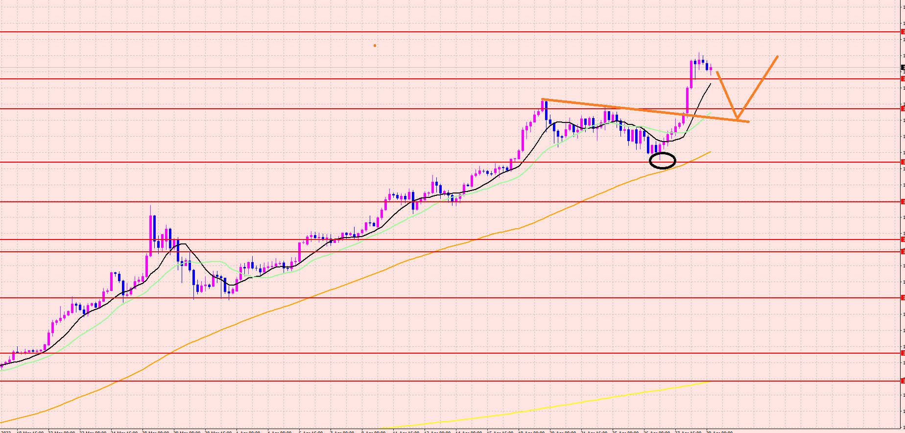 直近高値ものラインブレイク中なので、再上昇する可能性が高いと見ています(・ω・)ゞ