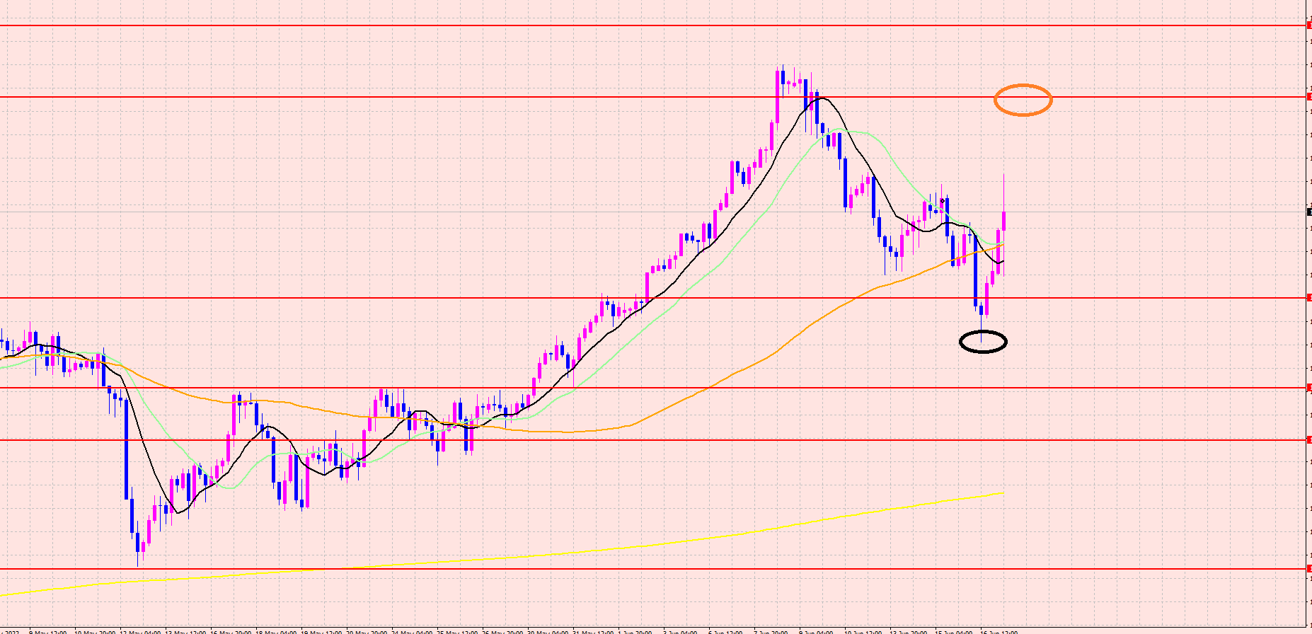 少しブレイクしてしまいましたが、オレンジの移動平均線とライン付近でボトムを付けましたね♪