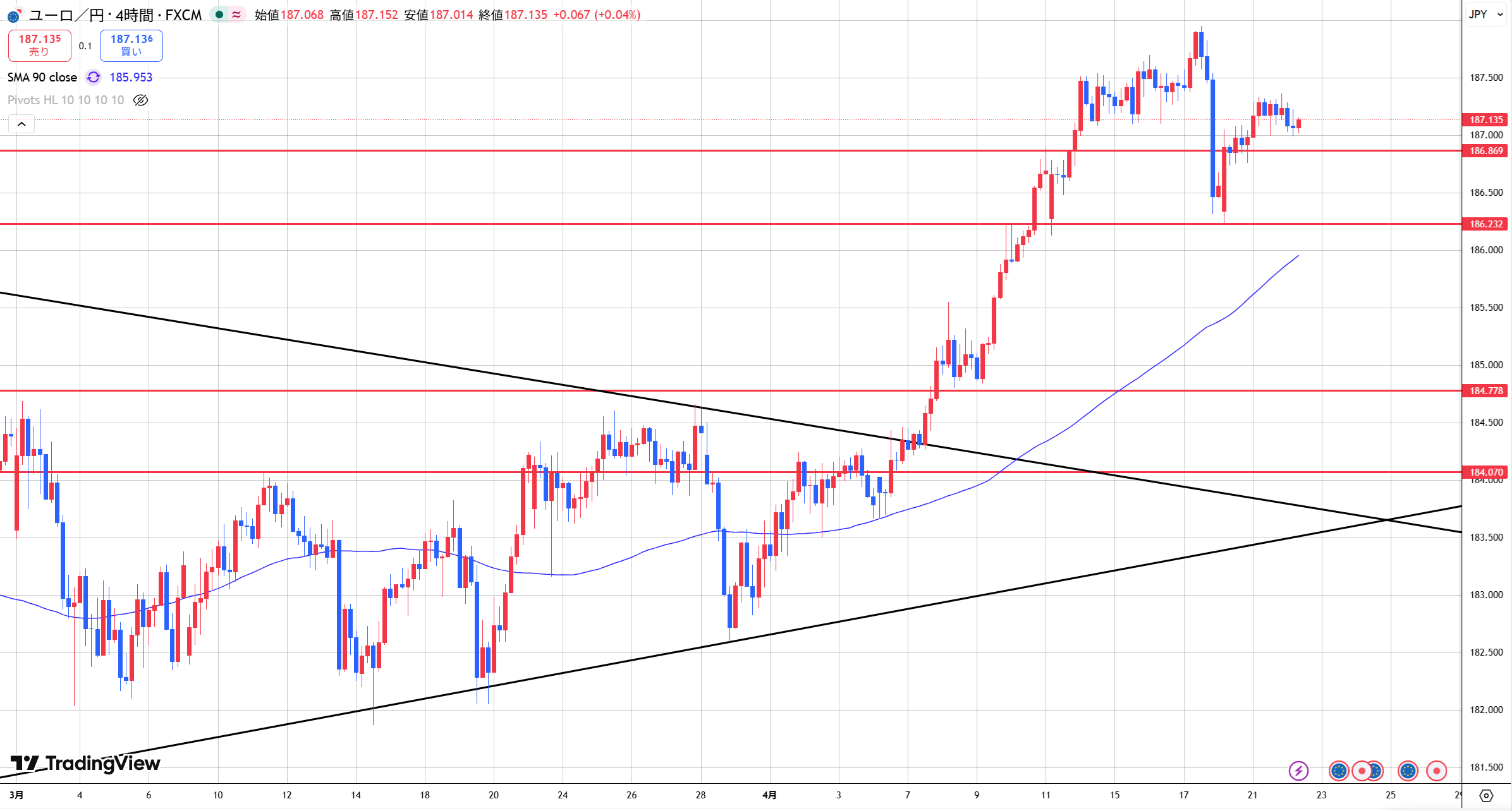今日はユーロ円相場分析をしていきます。